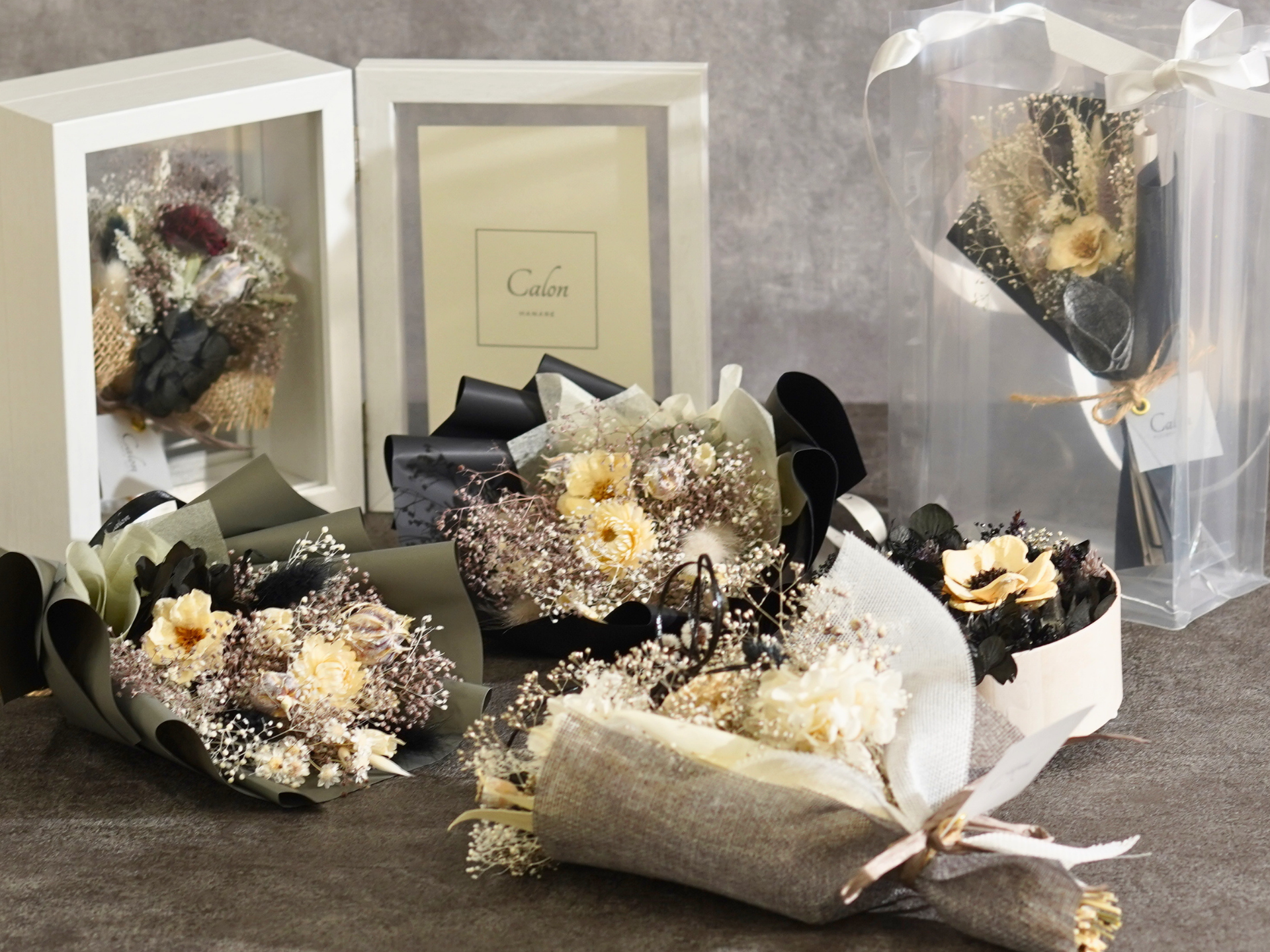 最高水準の花と熟練されたデザイナーによる、Calonにしか作ることのできないアレンジを多数販売。