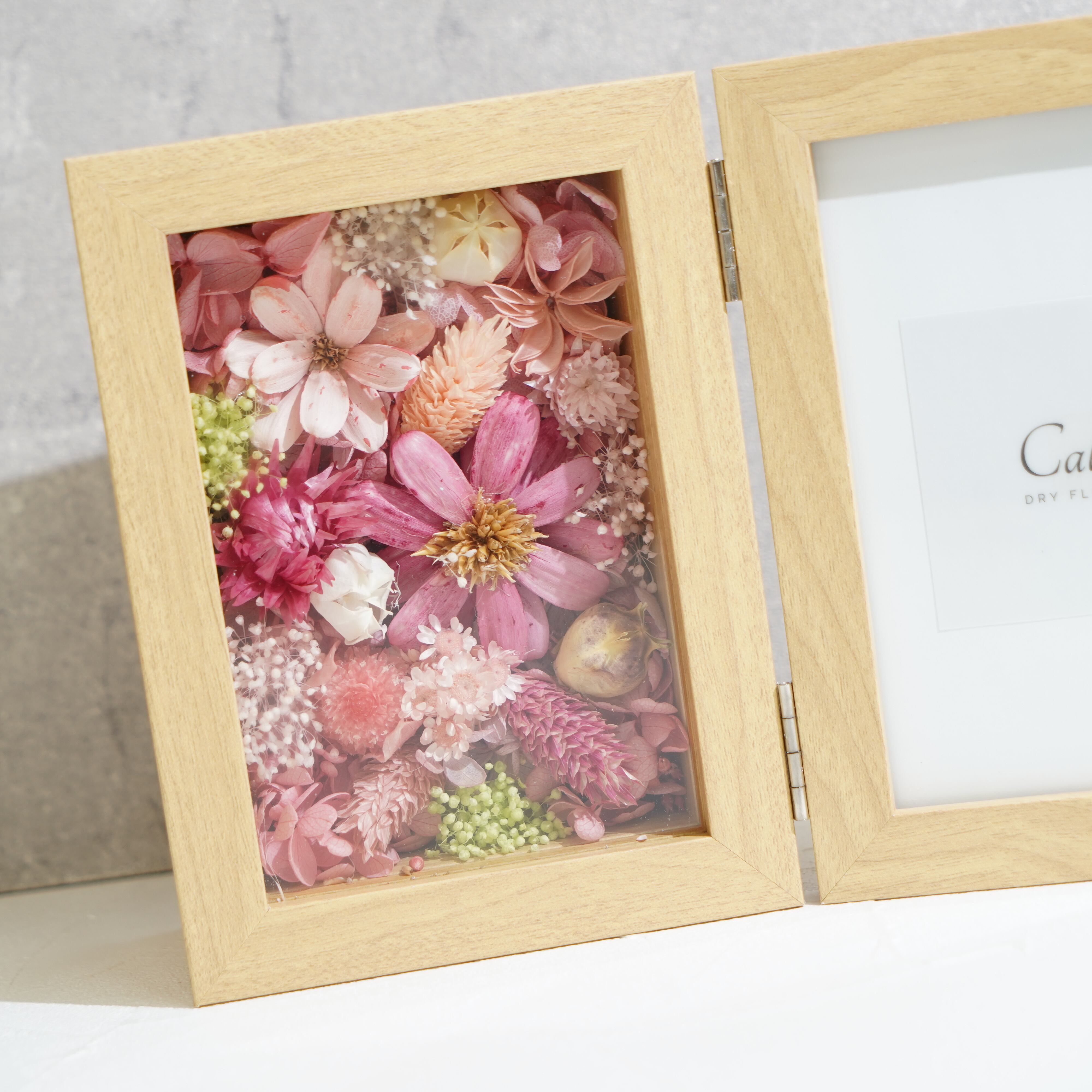 ドライフラワーとプリザーブドフラワーを一面に敷き詰めた贅沢なデザインです。