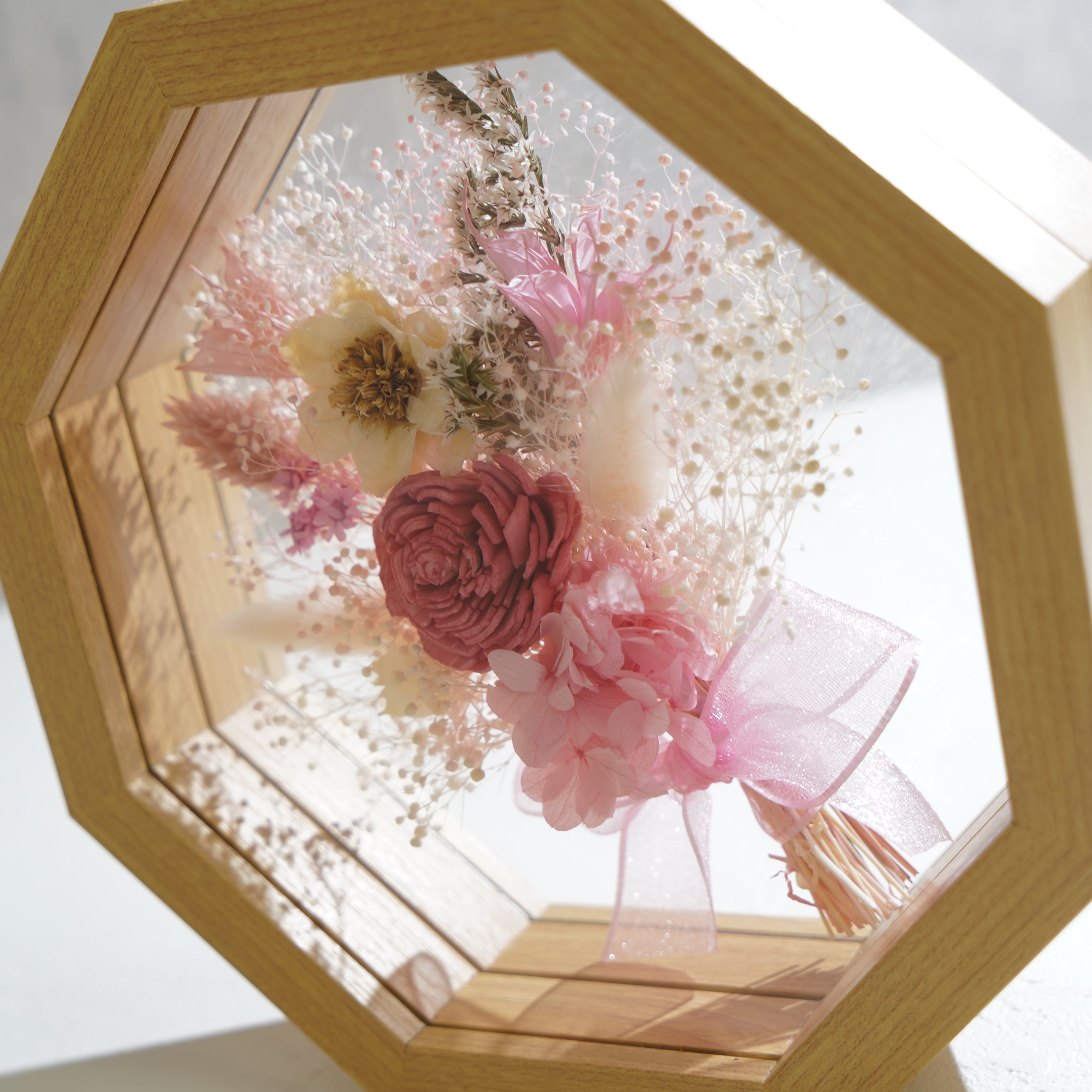 【ピンク】フレームフラワー 八角形 花束タイプ≪限定1点≫