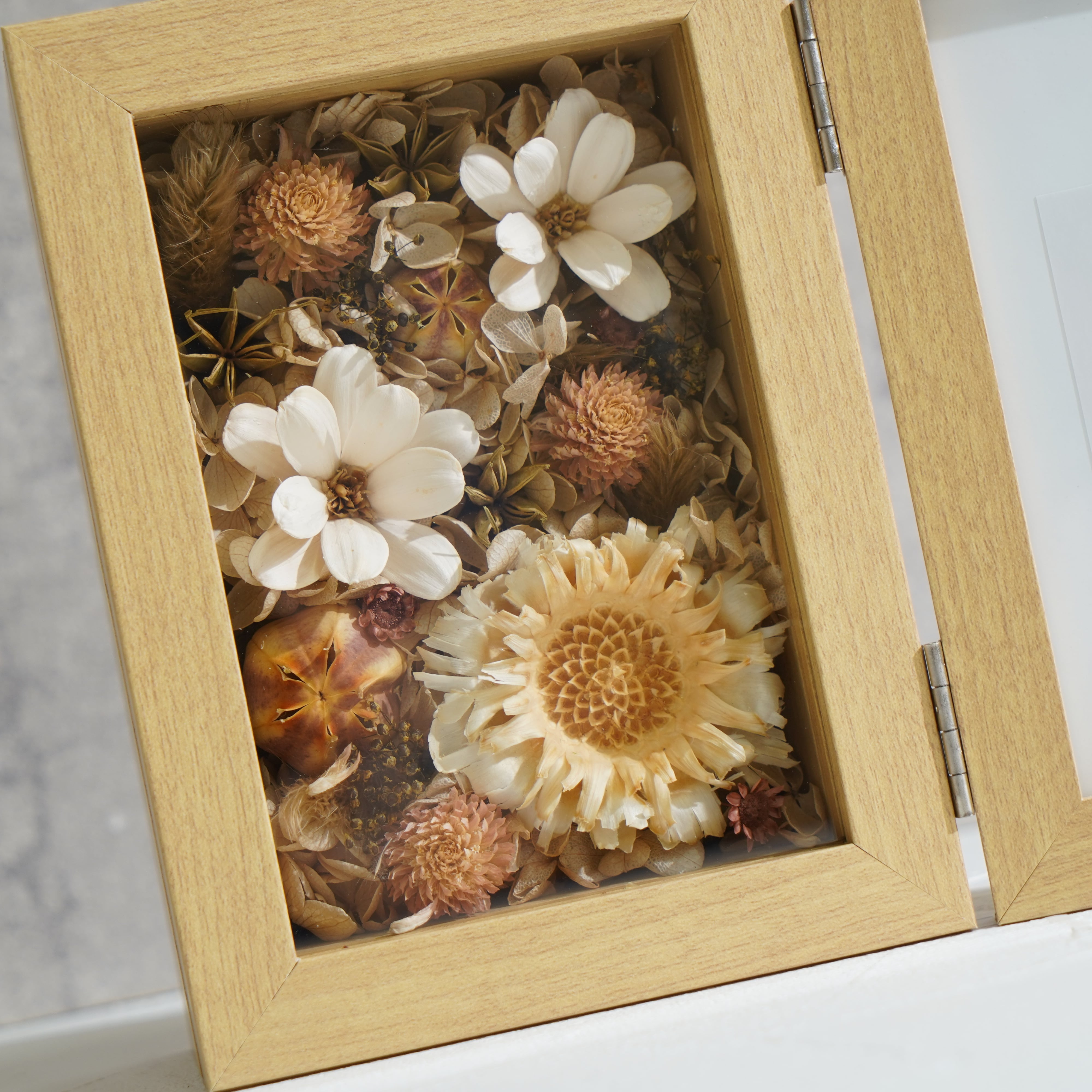ドライフラワーとプリザーブドフラワーを一面に敷き詰めた贅沢なデザインです。