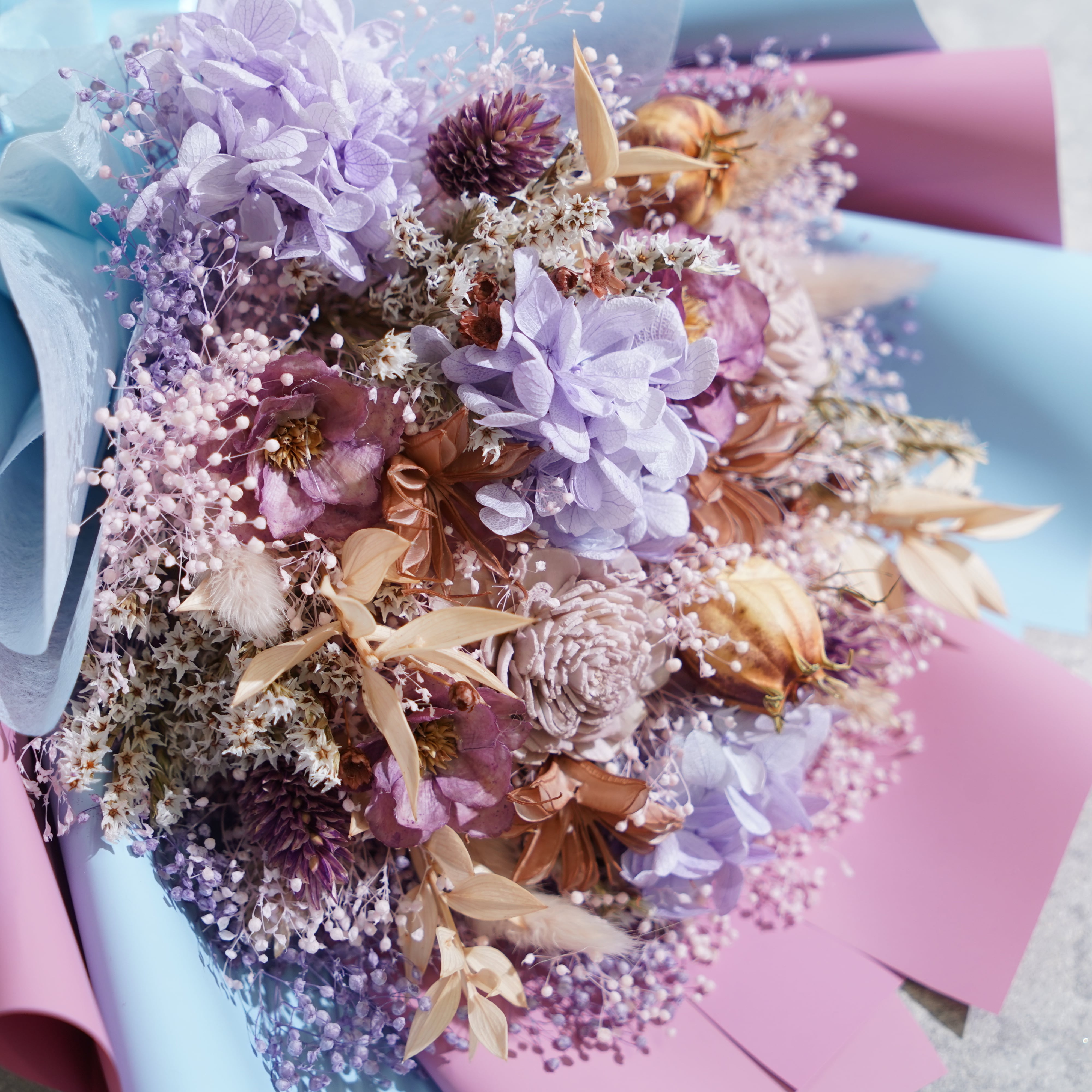 ドライフラワーの花束 Mサイズ ライトブルーパープル≪限定1点≫
