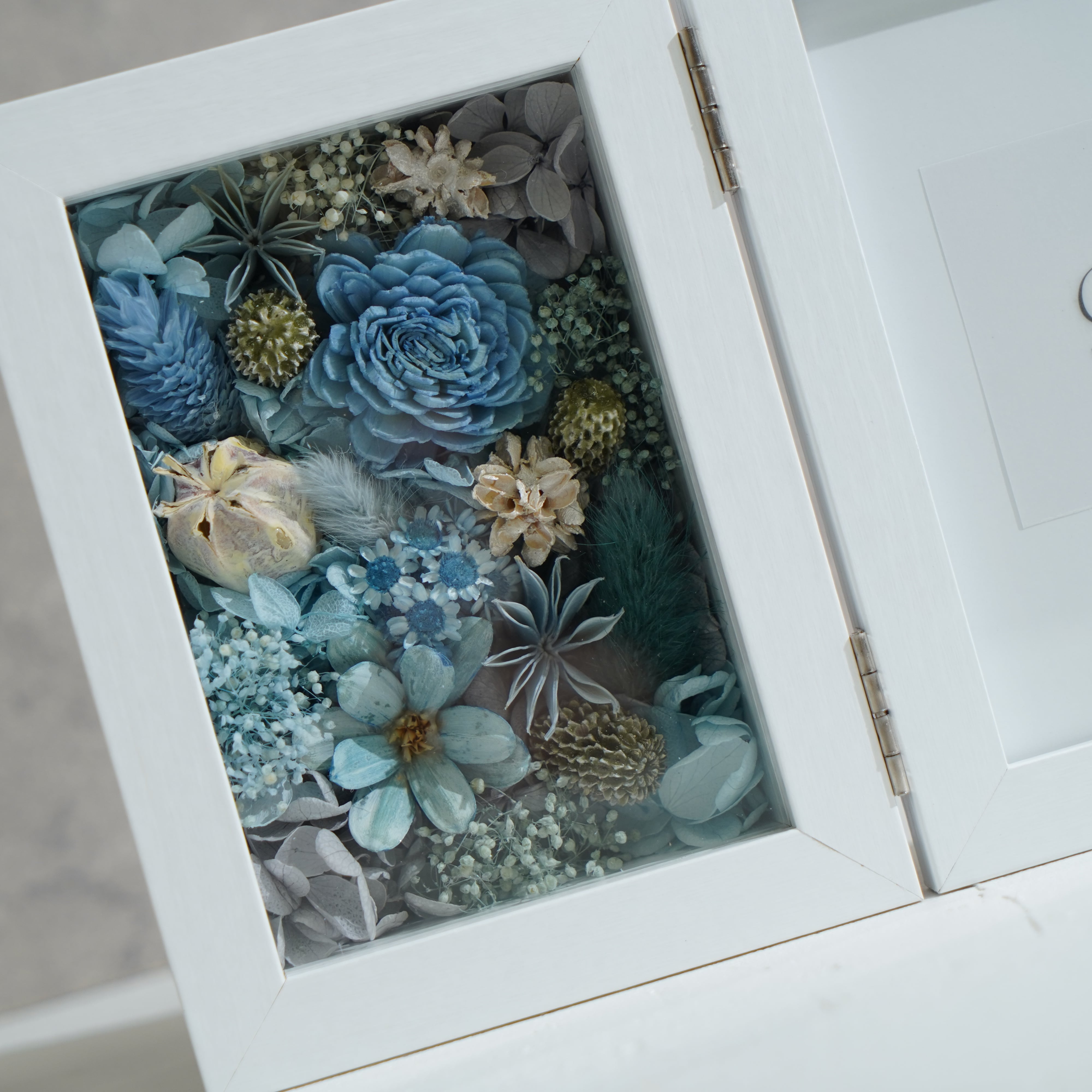 ドライフラワーとプリザーブドフラワーを一面に敷き詰めた贅沢なデザインです。