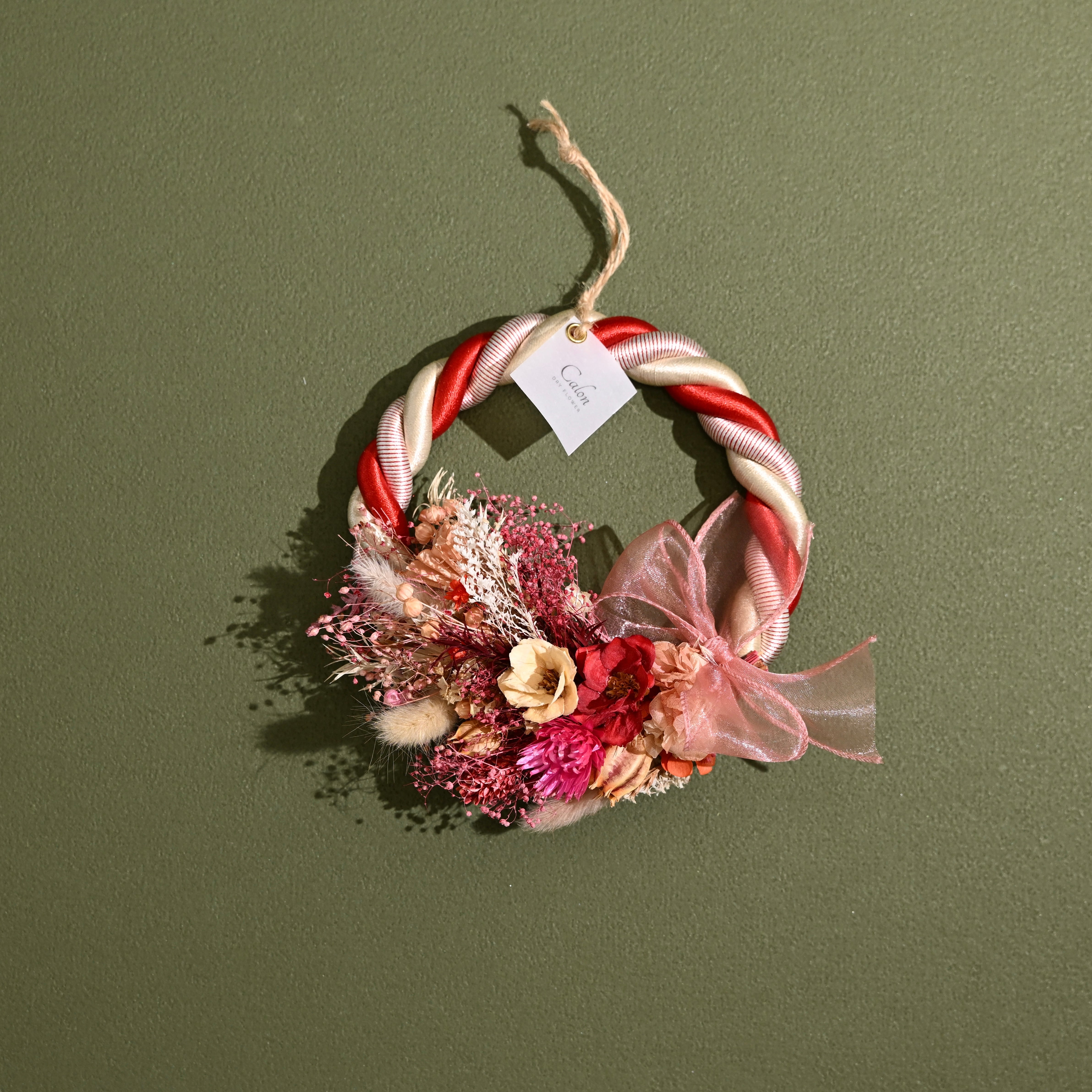 リースとしても、お正月飾りとしても楽しめる「しめ縄リース」。一年の終わりから新年にかけて、長く飾れるデザインが特徴です。
