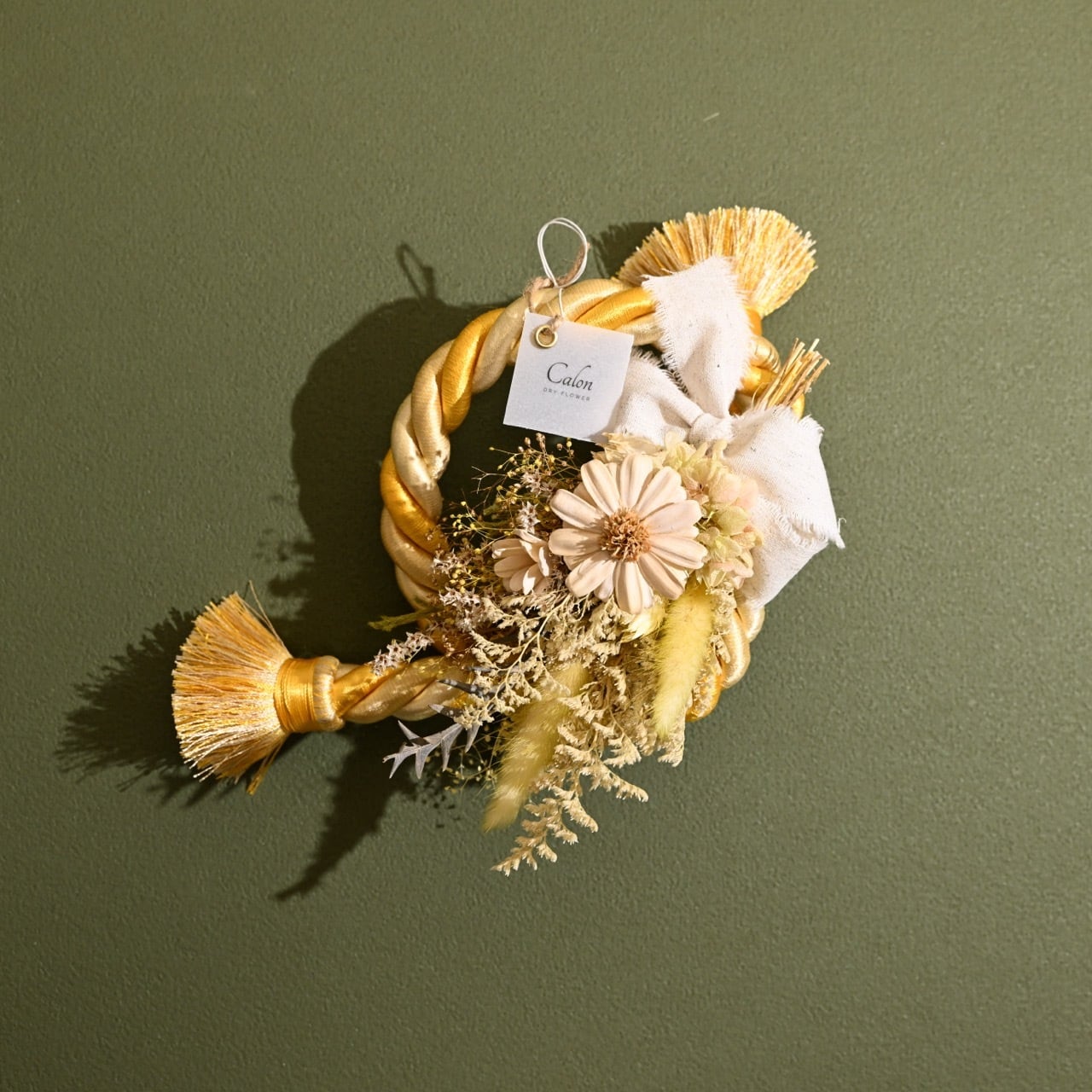リースとしても、お正月飾りとしても楽しめる「しめ縄リース」。一年の終わりから新年にかけて、長く飾れるデザインが特徴です。