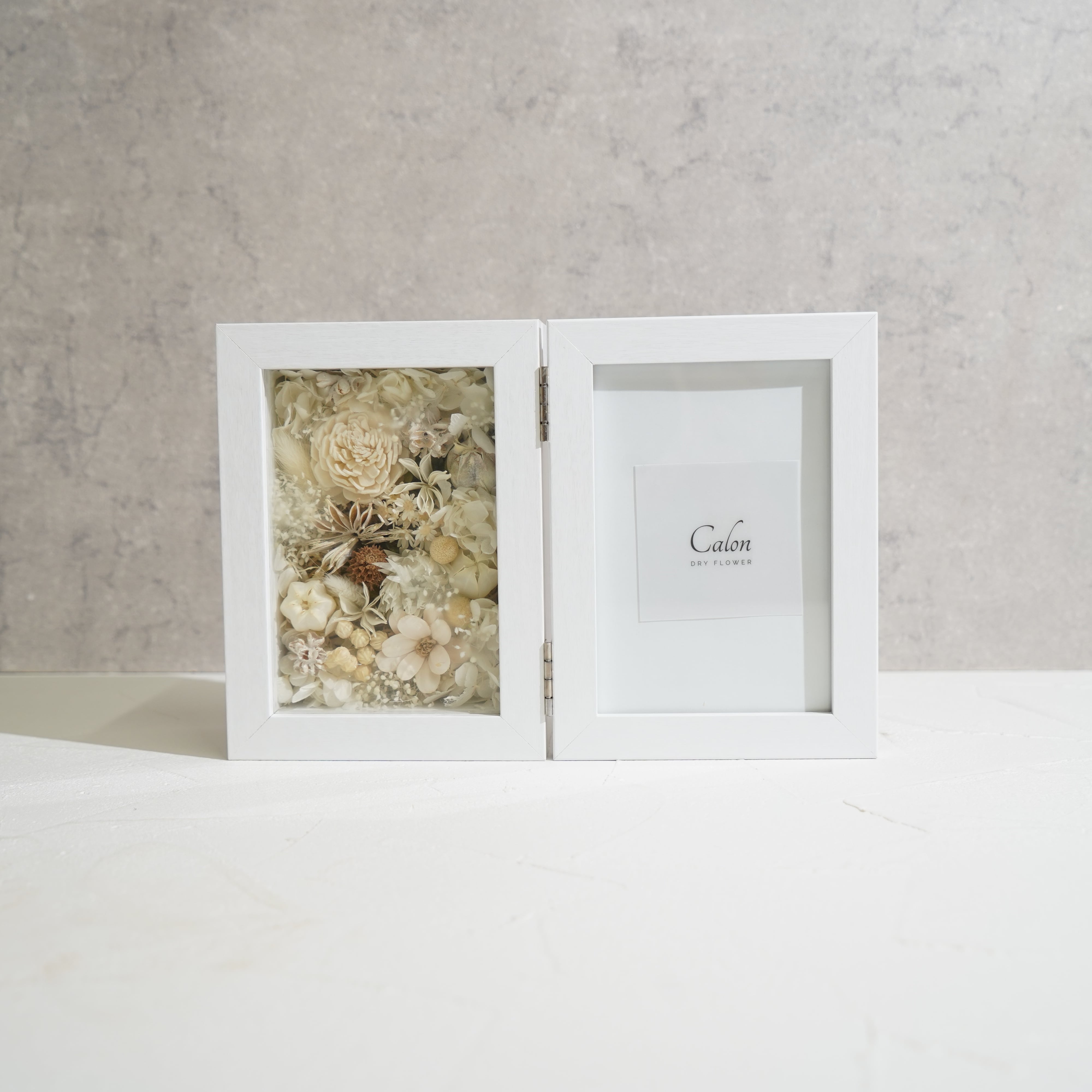 ドライフラワーとプリザーブドフラワーを一面に敷き詰めた贅沢なデザインです。