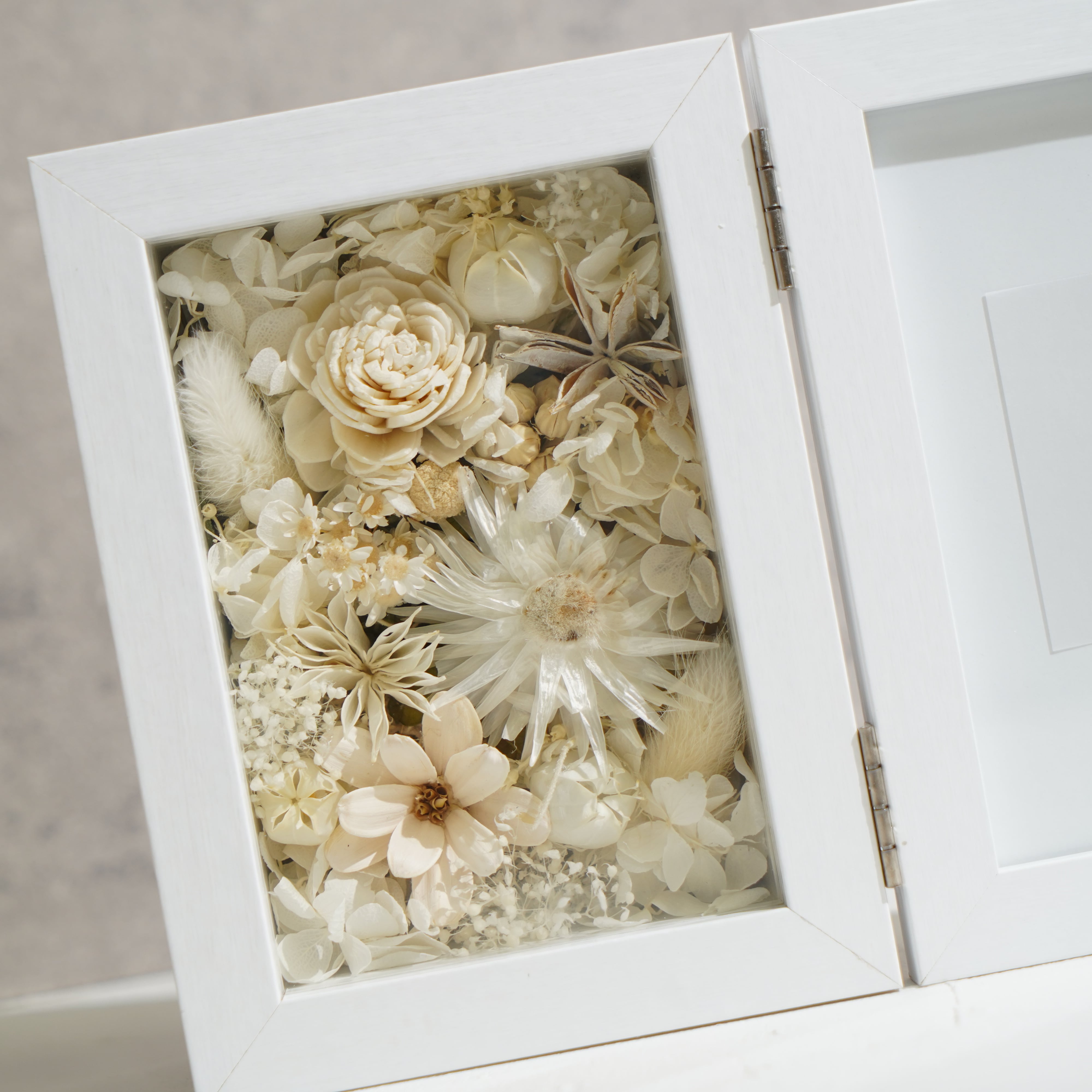 ドライフラワーとプリザーブドフラワーを一面に敷き詰めた贅沢なデザインです。