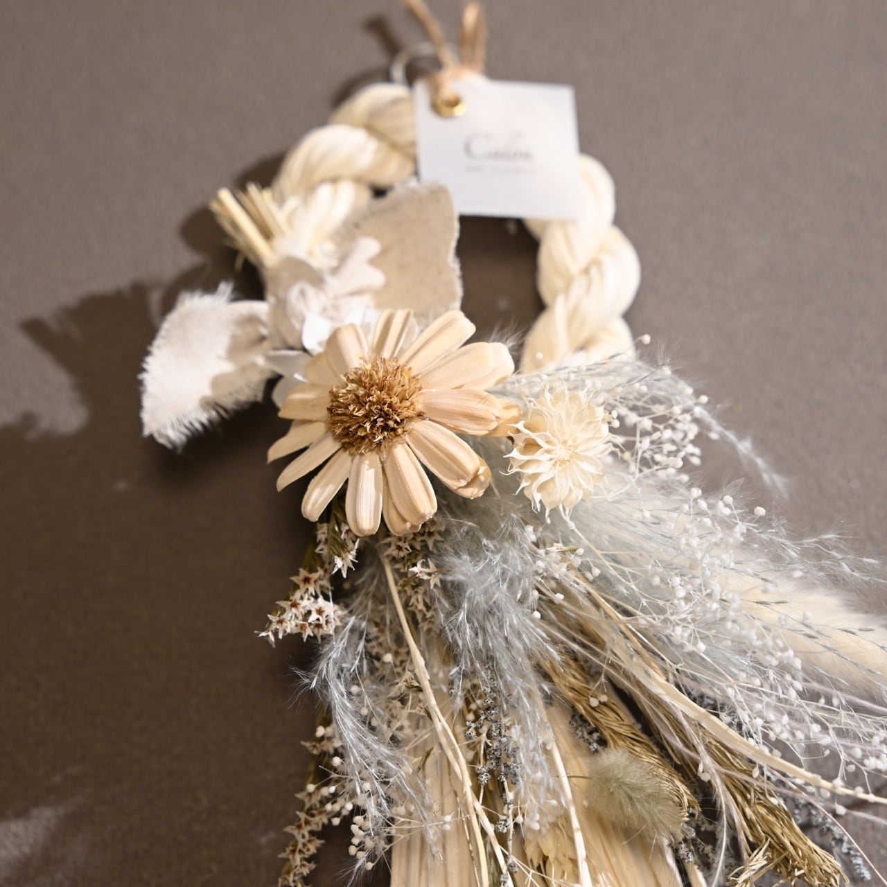 インテリアに馴染みやすい、洋風でナチュラルなデザインのしめ縄リース。