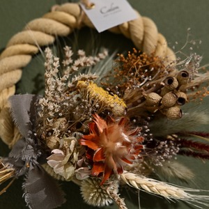 リースとしても、お正月飾りとしても楽しめる「しめ縄リース」。一年の終わりから新年にかけて、長く飾れるデザインが特徴です。