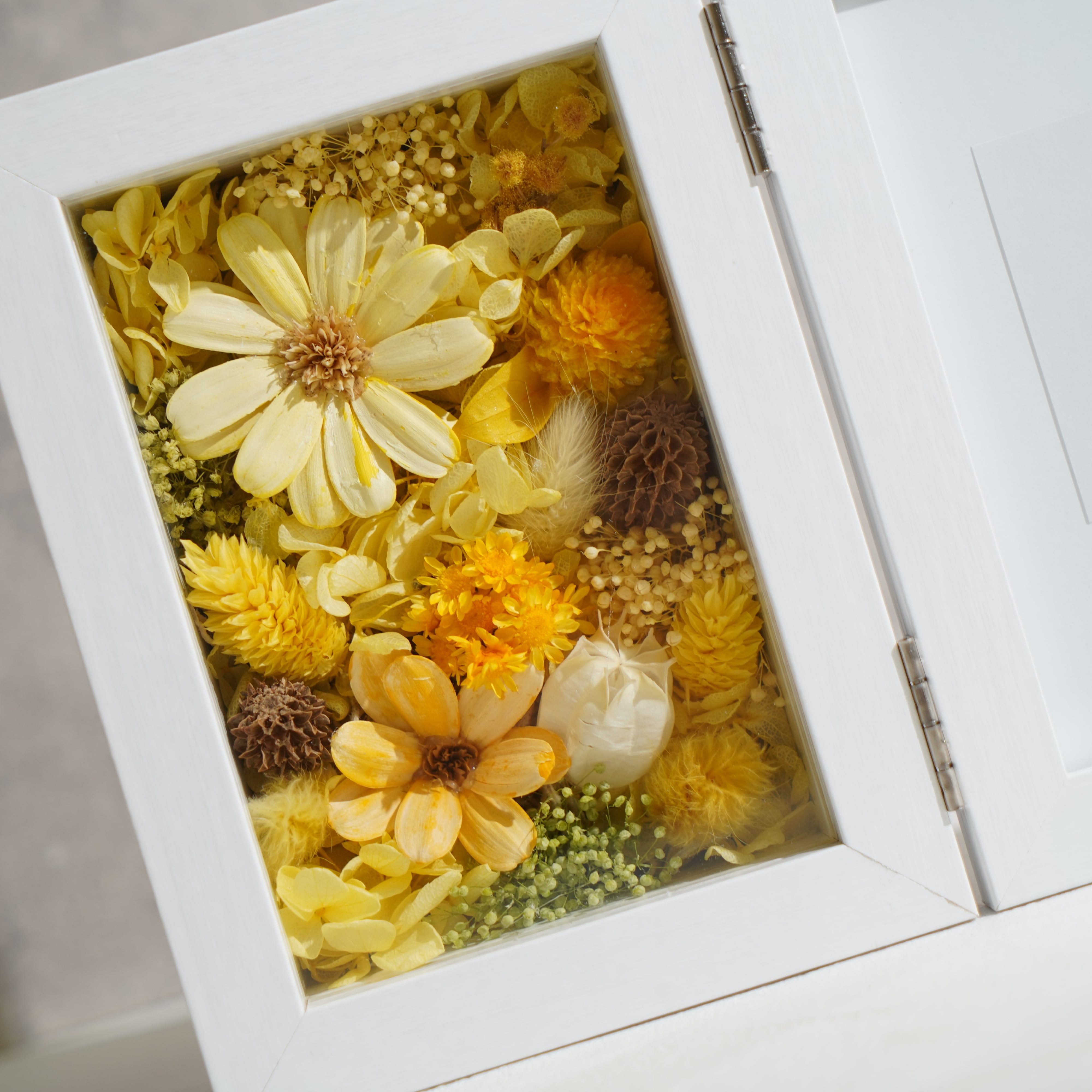 ドライフラワーとプリザーブドフラワーを一面に敷き詰めた贅沢なデザインです。