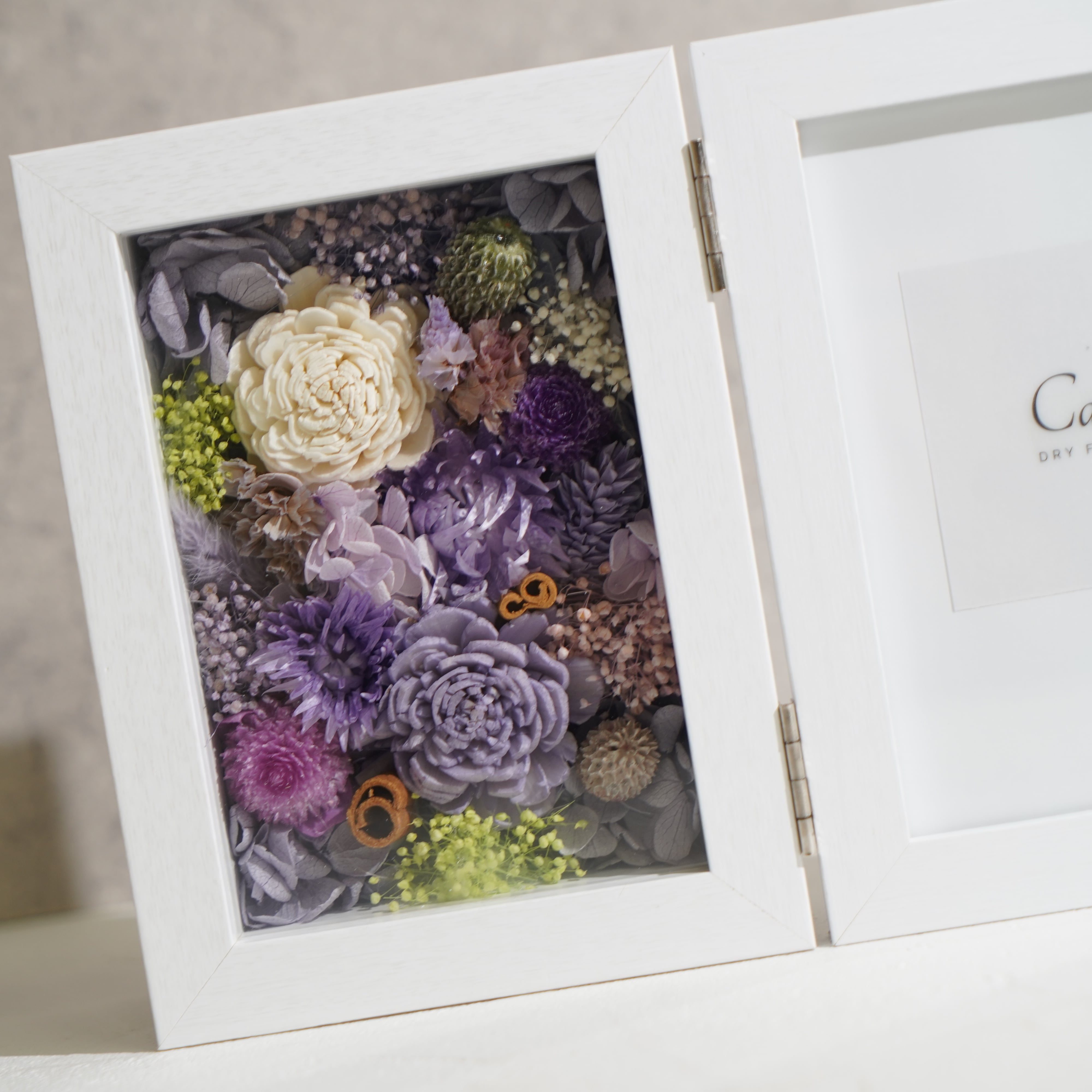 ドライフラワーとプリザーブドフラワーを一面に敷き詰めた贅沢なデザインです。