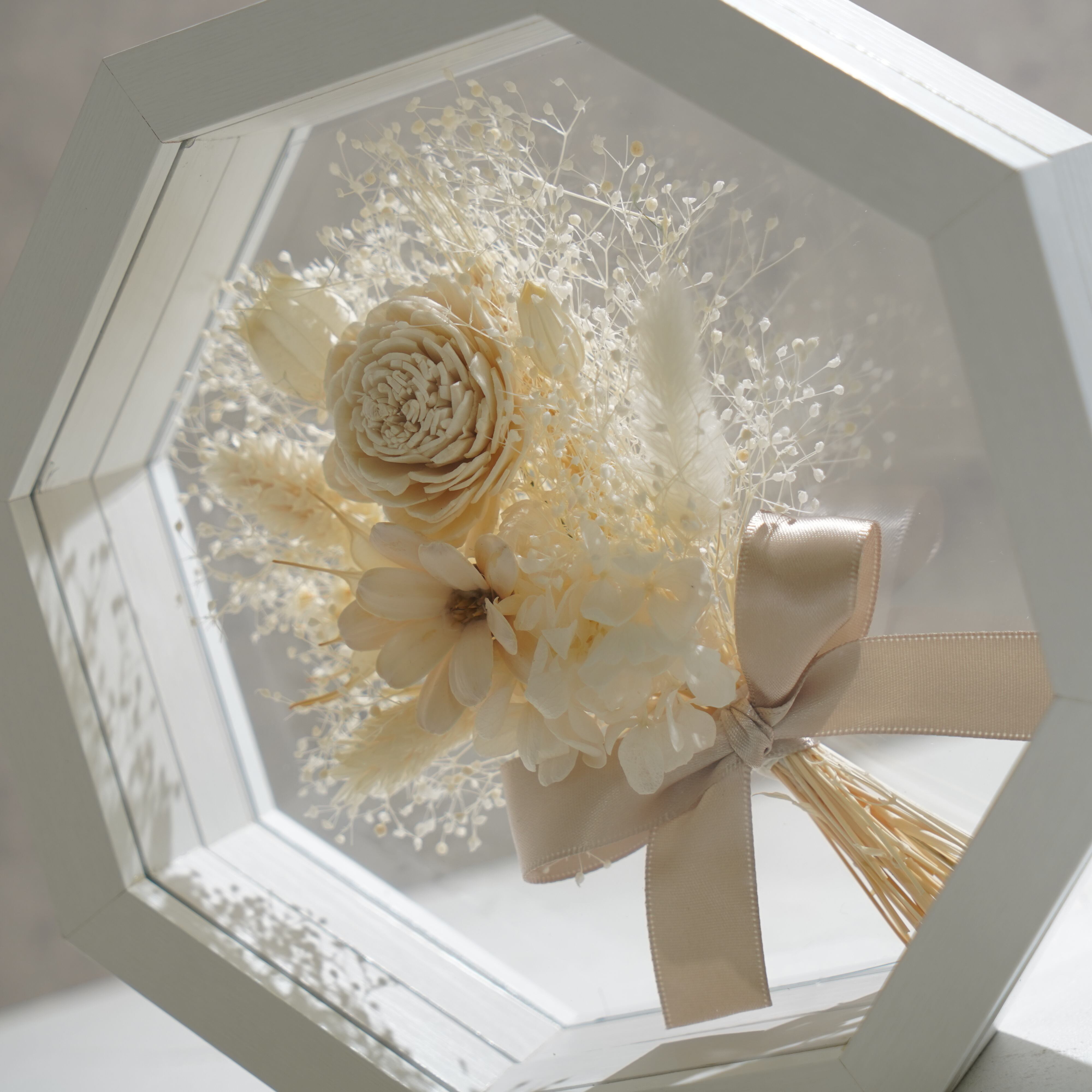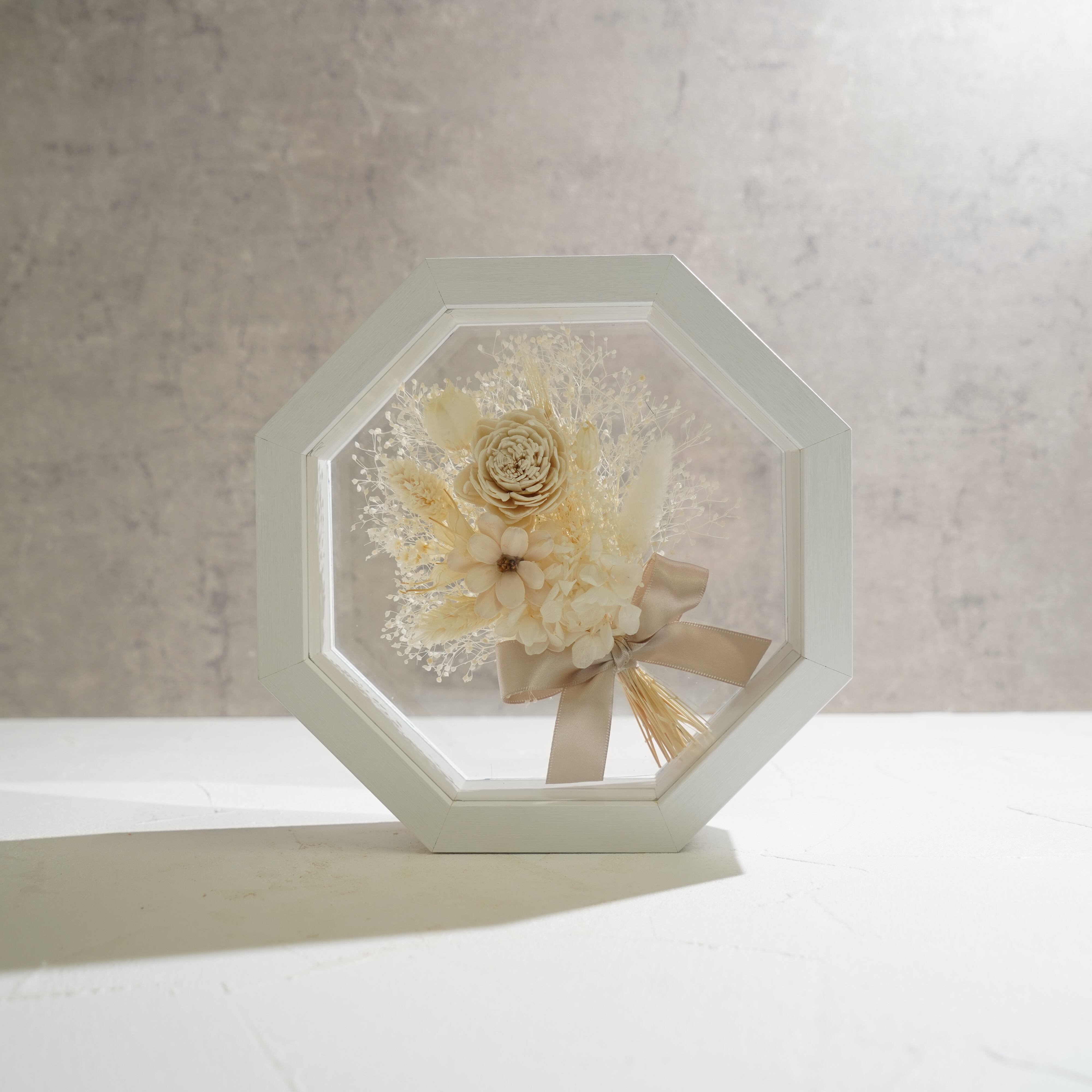 【ホワイト】フレームフラワー 八角形 花束タイプ≪限定1点≫
