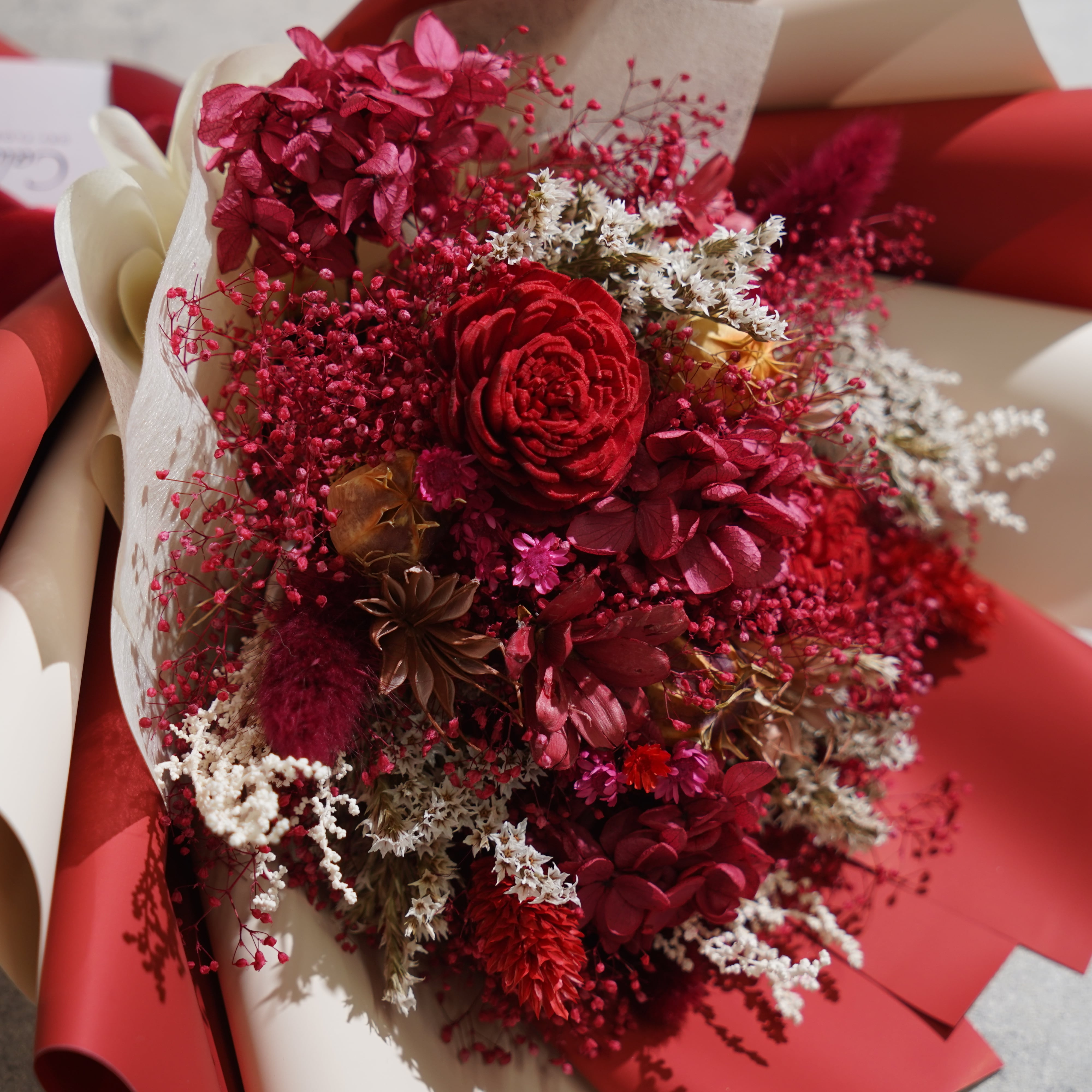 ドライフラワーの花束 Mサイズ レッド≪限定1点≫