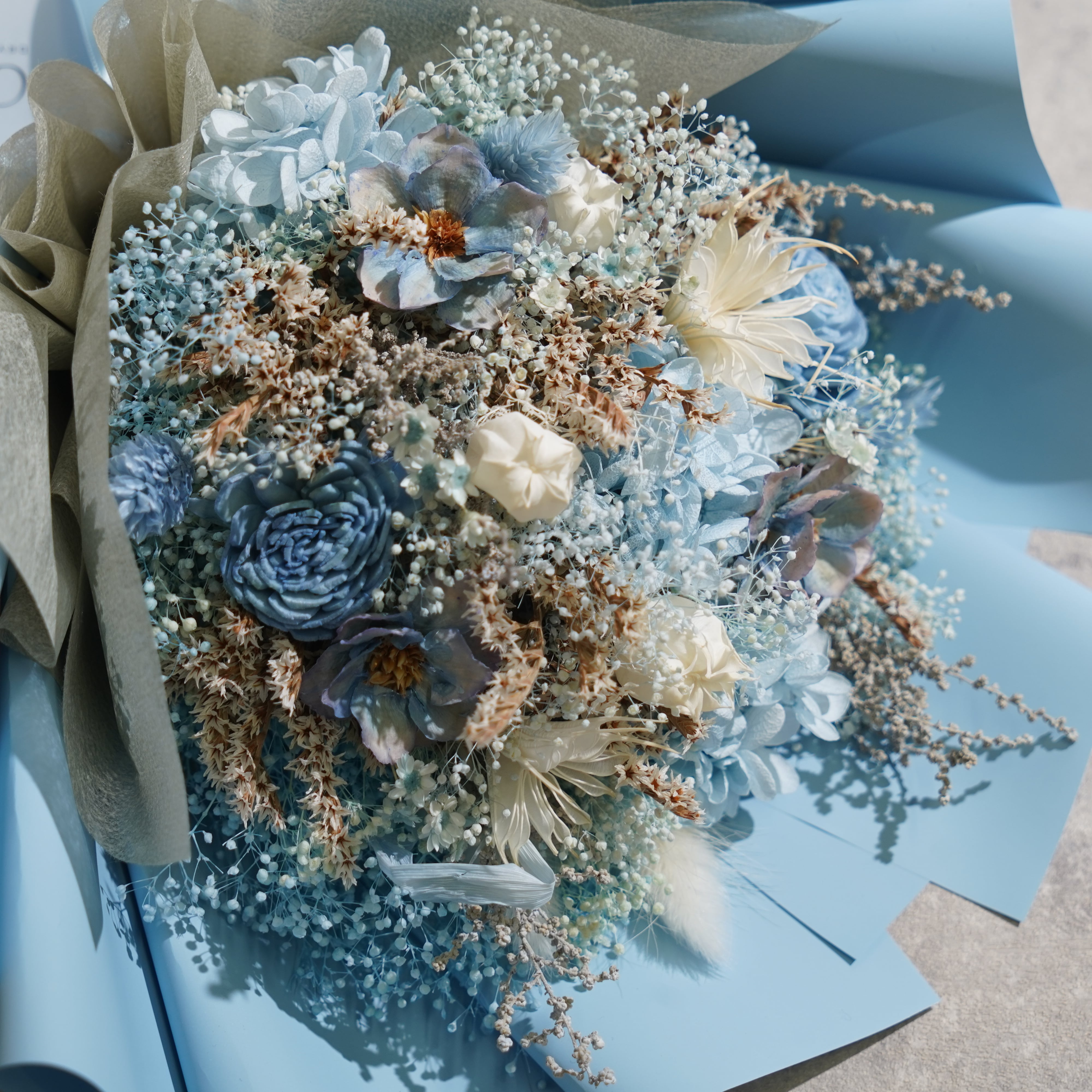 ドライフラワーの花束 Mサイズ ライトブルー≪限定1点≫