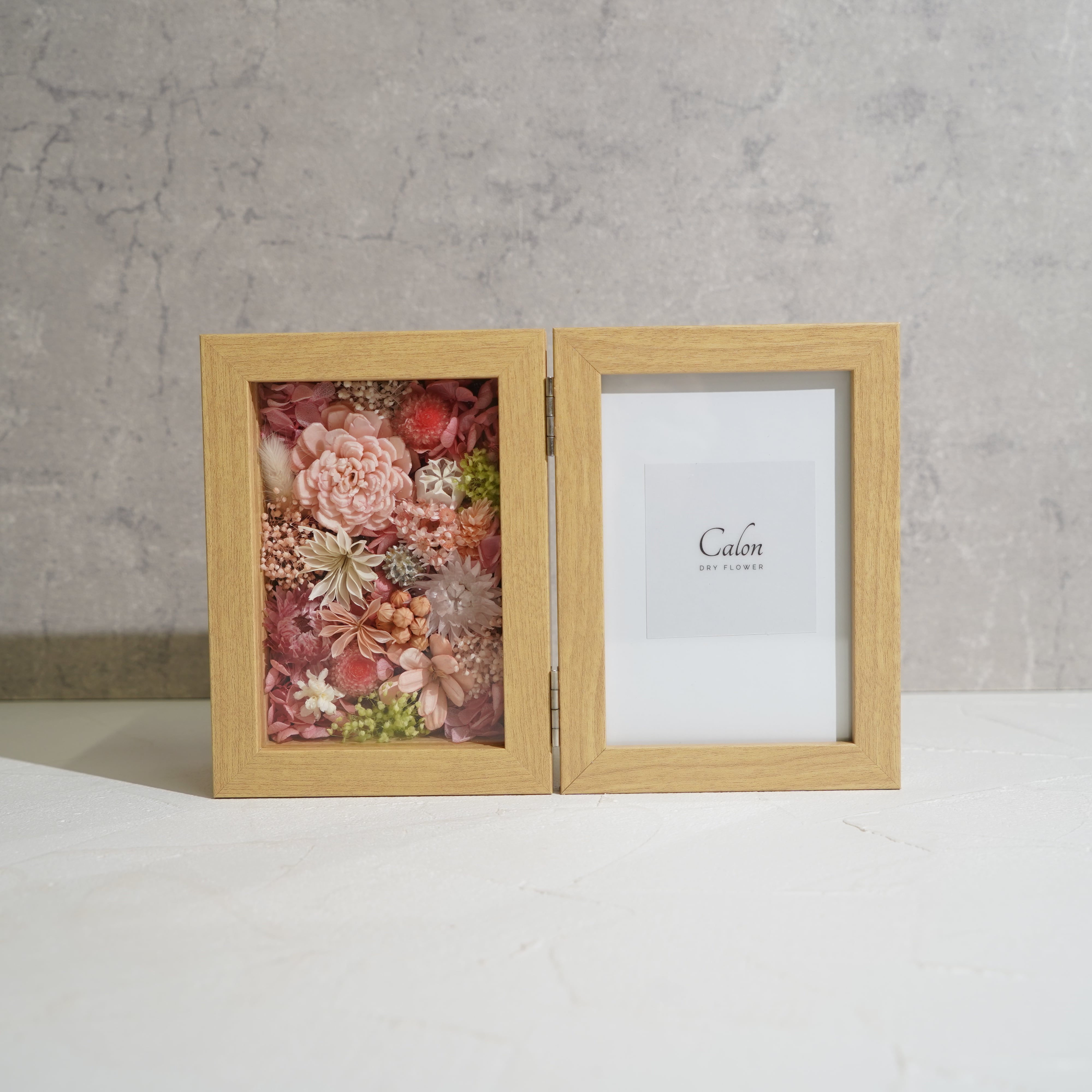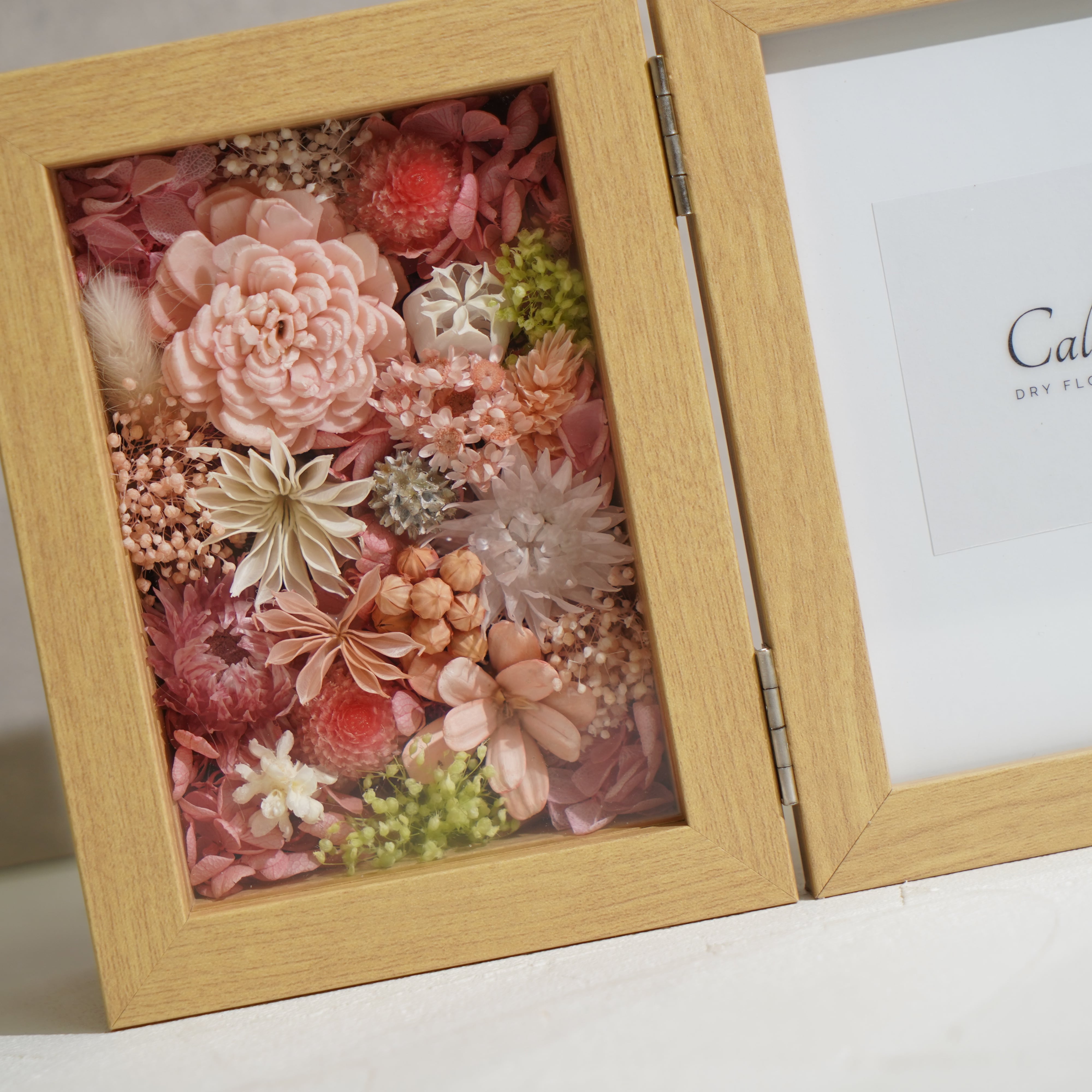 ドライフラワーとプリザーブドフラワーを一面に敷き詰めた贅沢なデザインです。