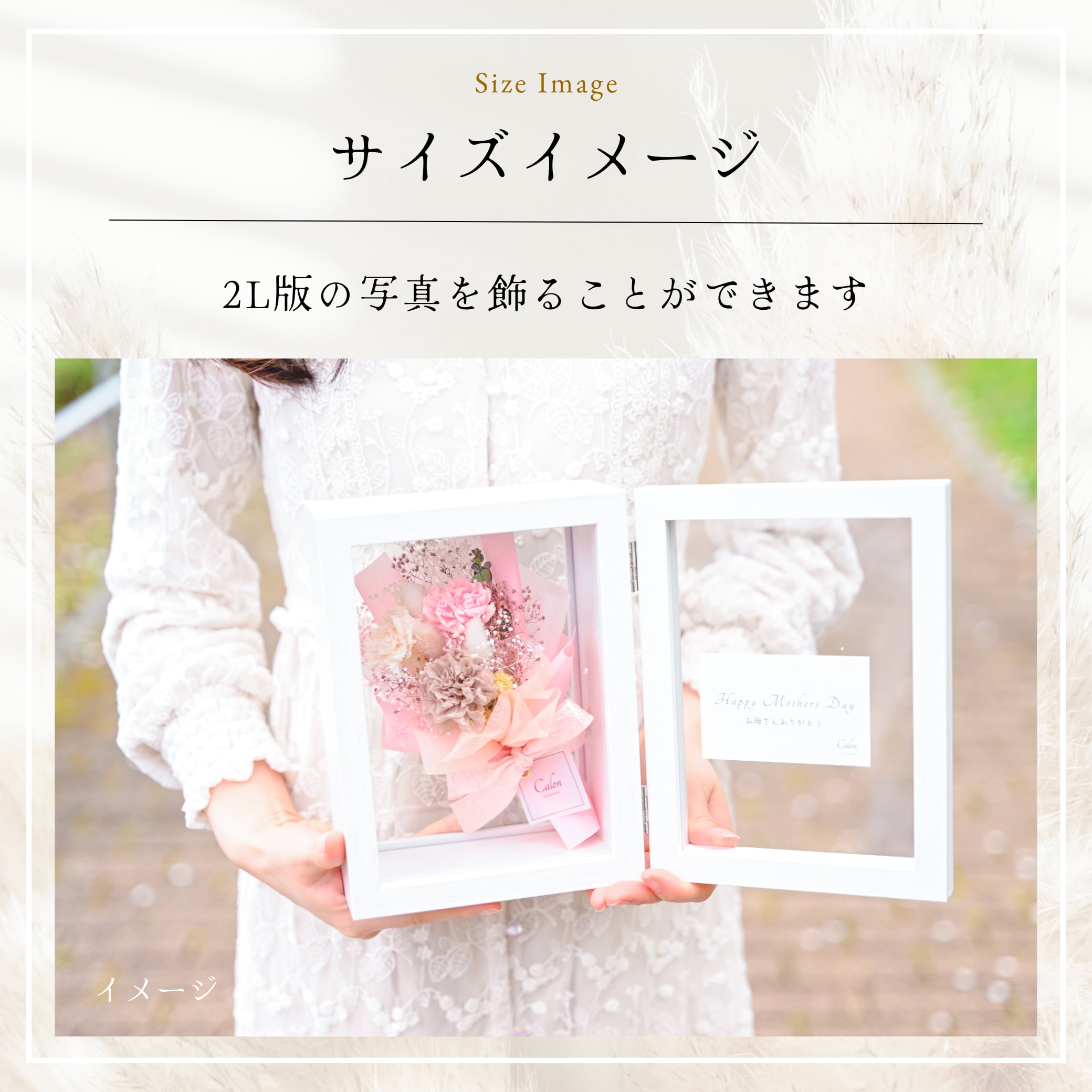 写真2L版に対応しているフォトフレーム。