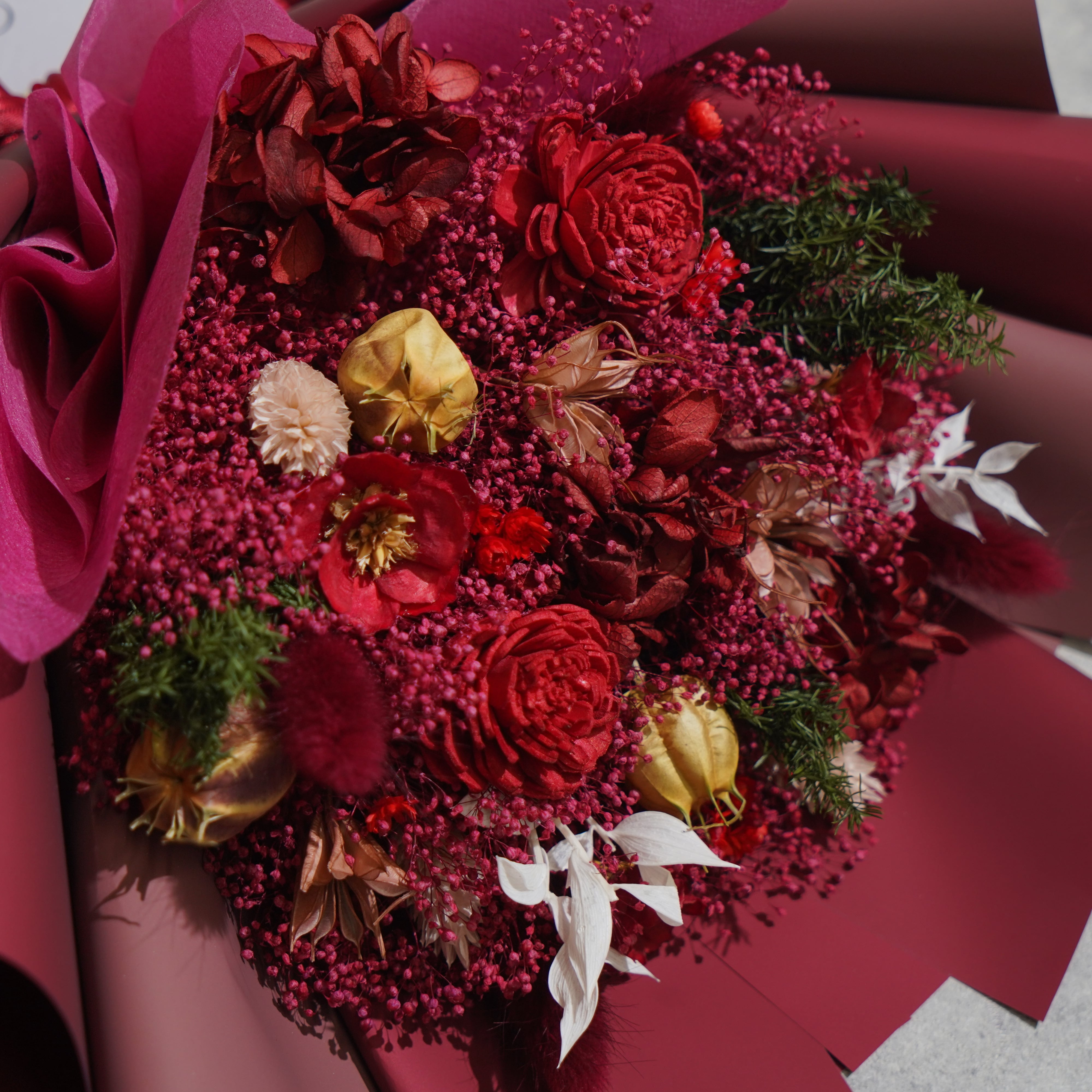 ドライフラワーの花束 Mサイズ レッド≪限定1点≫