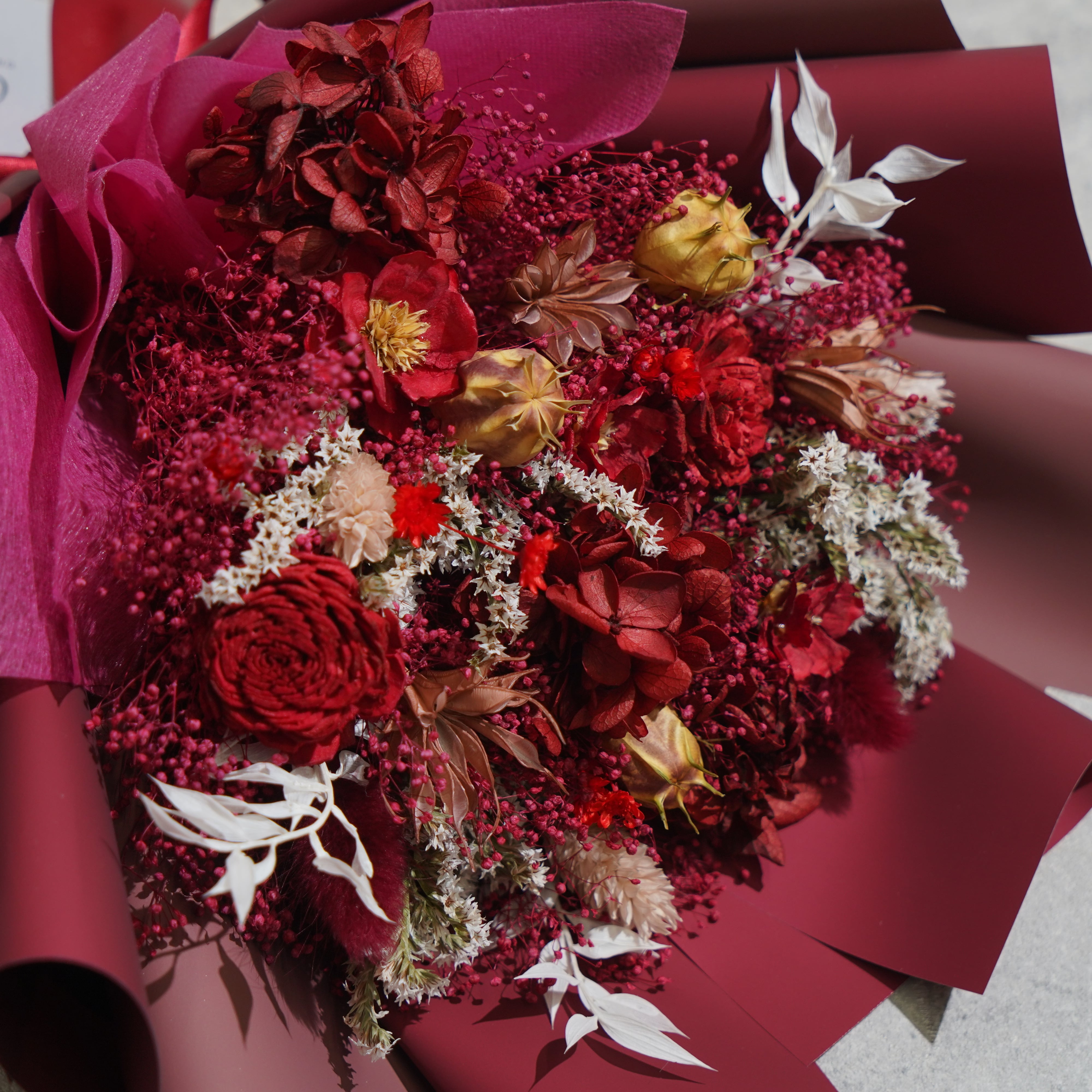 ドライフラワーの花束 Mサイズ レッド≪限定1点≫