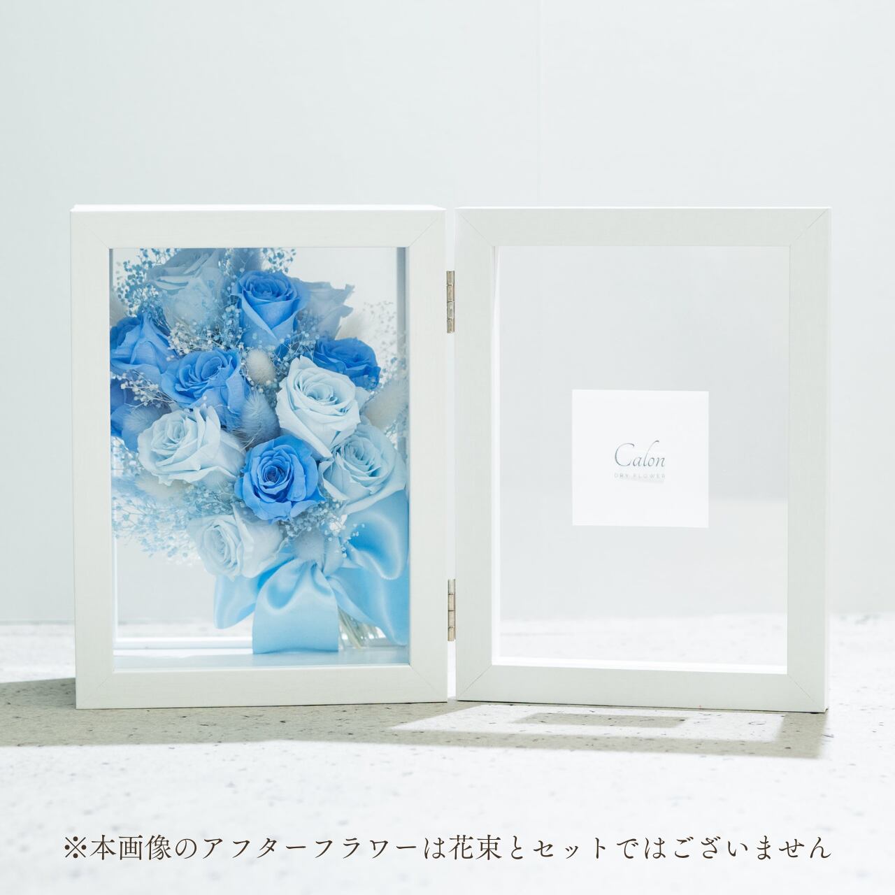 Calonではプリザーブドローズの枯れない花束をフレームフラワー・フォトフレームに再アレンジする『アフターフラワー』サービスを承っております。価格や注文方法については以下のページをご確認ください。